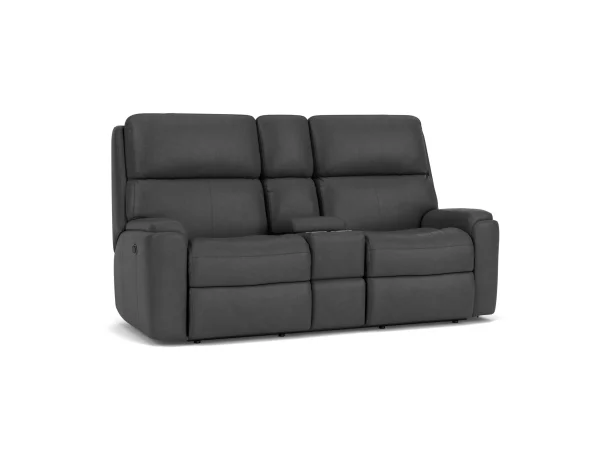 Rio Leather Power Reclining Loveseat with Console & Power Headrests