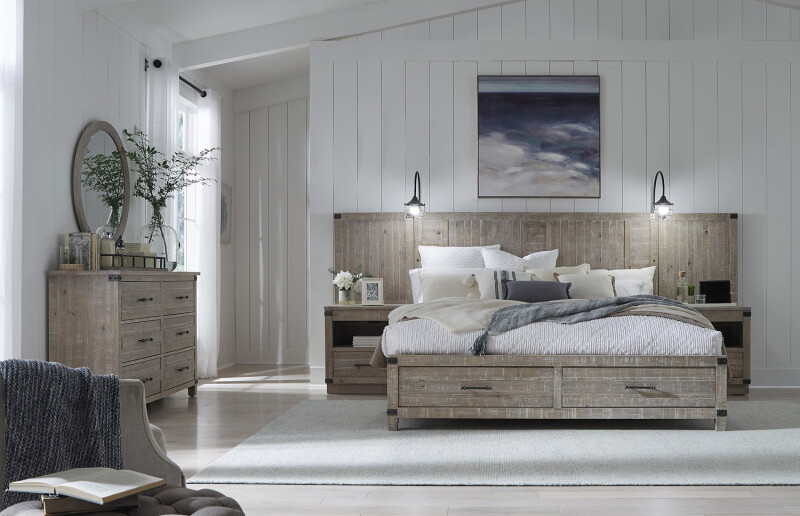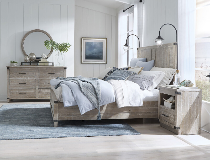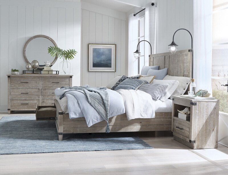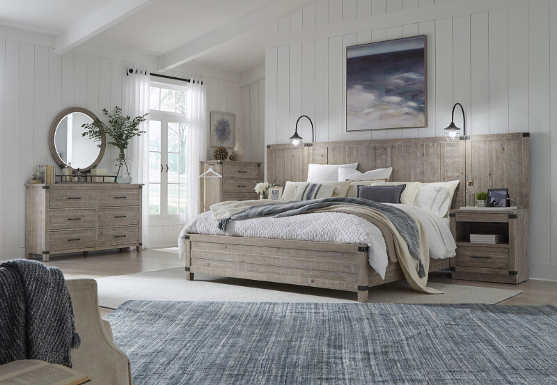 Foundry embodies the cozy warmth of farmhouse style combined with the rugged and raw flexibility of the industrial style from the Weathered Stone finish to the Iron finish metal accents and hardware.