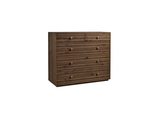 Neo-rustic, textured oak reeding is cleverly encased in the sleek, Modernist-inspired frame of our Andora Panel Bed. This study in sublime contrasts creates a panel bed that centers your bedroom with an expressive harmony of simplicity and sophistication. The wood grain of the headboard’s signature paneling employs a vertical, mast-like emphasis that sends your thoughts and dreams soaring skyward. Available in Queen, King, and California King, the rails and footboard rest on a plinth base that creates a floating effect. Each piece is as unique as the wood it’s built from, and is offered in your choice of three finishes.
