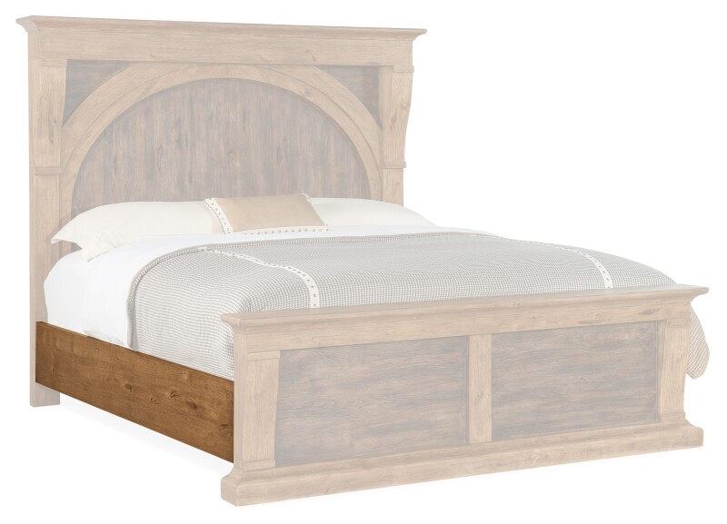 Inspired by the grandeur of wide open spaces in the American wilderness and the heritage of artistic craftsmanship, the Big Sky King Corbel Bed has exuberant scale in a vintage mansion style. Substantial corbels and crown moldings add to the drama. Crafted of Pecky Hickory Veneers, the bed is finished in Vintage Natural, a warm, rustic organic finish. Includes headboard, footboard and rails.