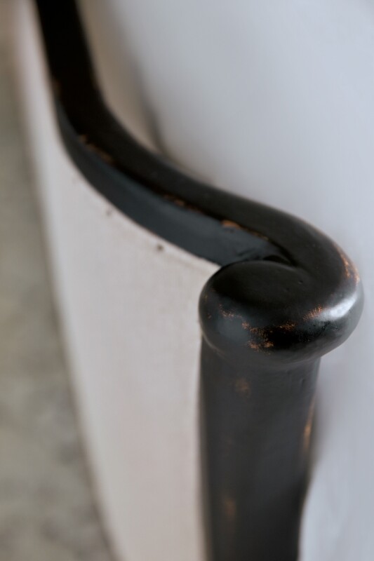 The sweeping, shaped headboard and footboard of the stunning Ciao Bella Queen Upholstered Bed will present a romantic centerpiece of your master suite or guest bedroom. The creamy Tuscan White upholstered headboard and footboard are framed in Poplar Solids finished in a hand-chiseled exquisite black color and trimmed in intricate tack nailheads. Includes the headboard, footboard and rails.