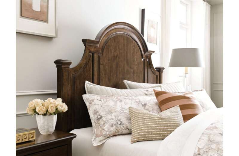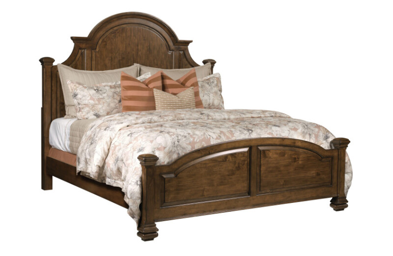 Made with solid Alder, the Allenby Bed is available in Queen or King sizes and features three raised panels in the headboard and two in the footboard. This raised panel design recalls the classic elements of traditional furniture and creates depth and interest in the piece. A large crown molding cut from solid wood stock adds a more transitional style to the bed to keep things current and casual.