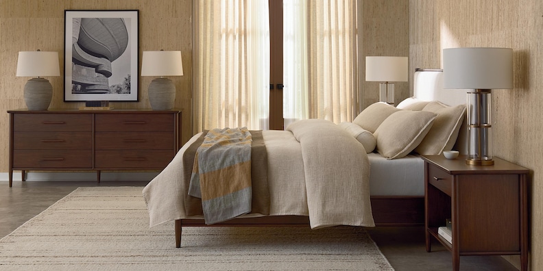 Employing the classic characteristics of Danish mid-century modern design, the Copenhagen Upholstered Bed delivers a more softly styled interpretation featuring an upholstered headboard