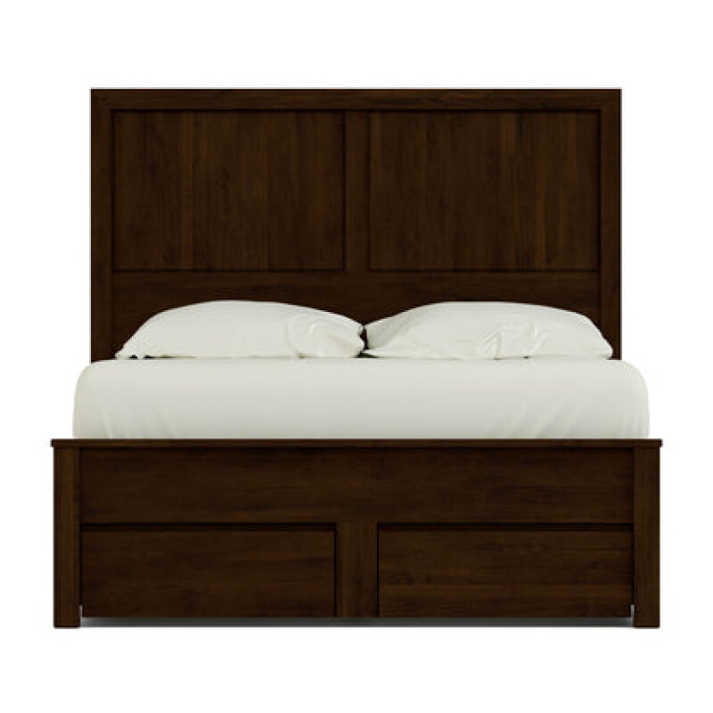 Solid maple gets a modern update in the Dwyer Bed. Its frame-and-panel headboard and footboard create a contemporary silhouette, and optional storage is available to maximize your space. This footboard storage version, available in California King, King, Queen, or Full, can be configured as a platform bed or to accommodate a box spring and mattress.