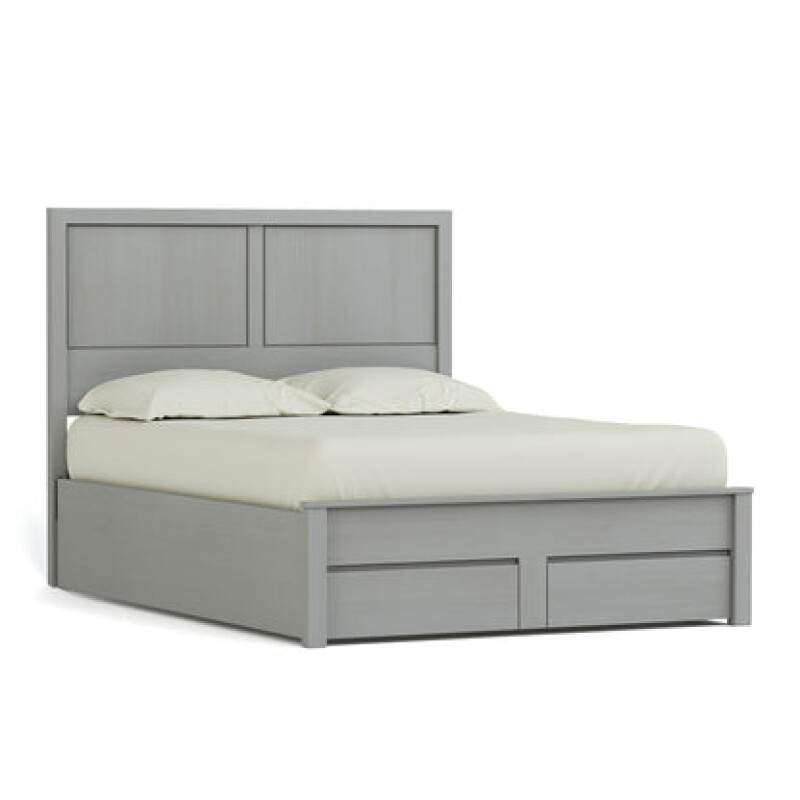 Solid maple gets a modern update in the Dwyer Bed. Its frame-and-panel headboard and footboard create a contemporary silhouette, and optional storage is available to maximize your space. This footboard storage version, available in California King, King, Queen, or Full, can be configured as a platform bed or to accommodate a box spring and mattress.