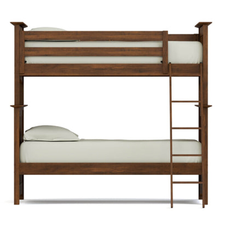 Traditional Shaker style is reimagined in the Gable Road Bed. A frame-and-panel headboard and footboard make a simple yet beautiful statement. The Bunk Bed Set consists of two Gable Road Twin/Bunk Beds, one large and one small guard rail, one ladder with vinyl-covered hooks, four steel connector pins, and instructions. The set can be converted to individual twin beds once the bunks are outgrown.