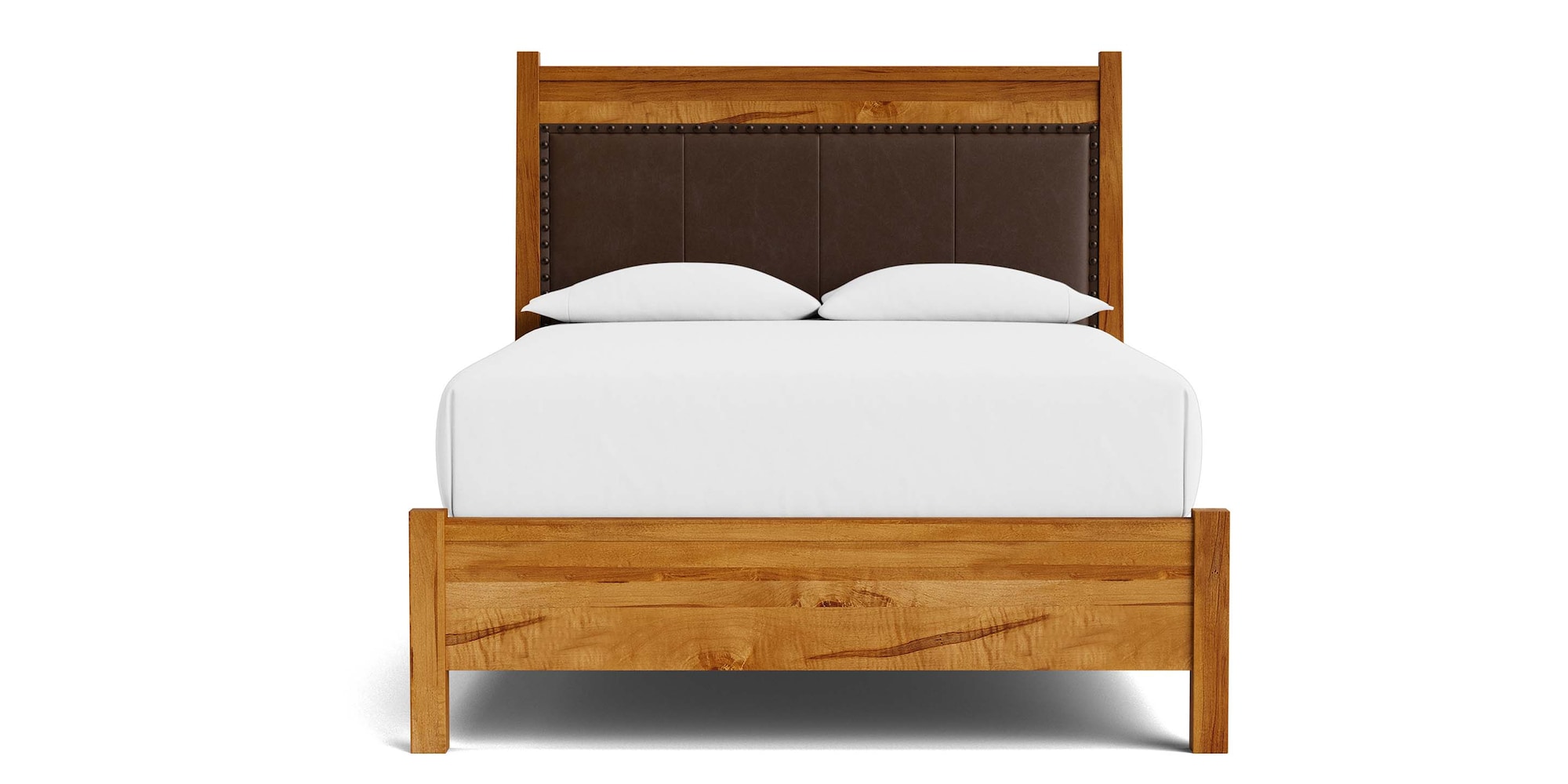 Your custom Heritage Leather Upholstered Bed is the result of giving Bassett artisans free rein to combine exquisite natural elements like homegrown maple hardwood and luxurious leather. Adding an upholstered panel of leather to the Appalachian maple softens the look and feel of your Heritage bed while augmenting its neo-rustic elegance. Style the bed to enhance your design plan with your choice of Bassett leather and details like nailhead trim.