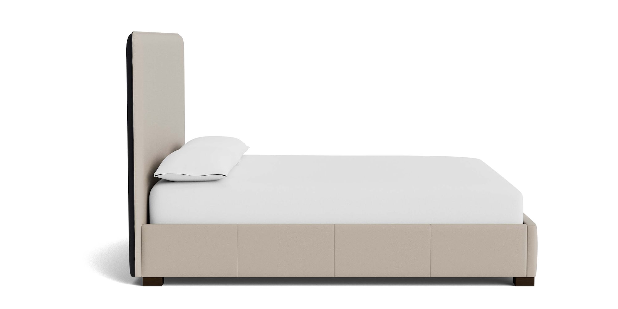 Wrap your Madison Platform Bed in luxurious leather and let your nights take flight on modern wings of fancy. The bed’s modest scale adapts to almost any size bedroom and is available in Full, Queen, King, and Cal King. The flange welt on the side and top edges of the headboard adds subtle dimensionality and detail, especially when dressed in your choice of a fine Bassett leather. The low, sleek lines of the platform frame are not only an aesthetic statement but provide a sturdy support for your mattress of choice, with no box spring or separate foundation needed.