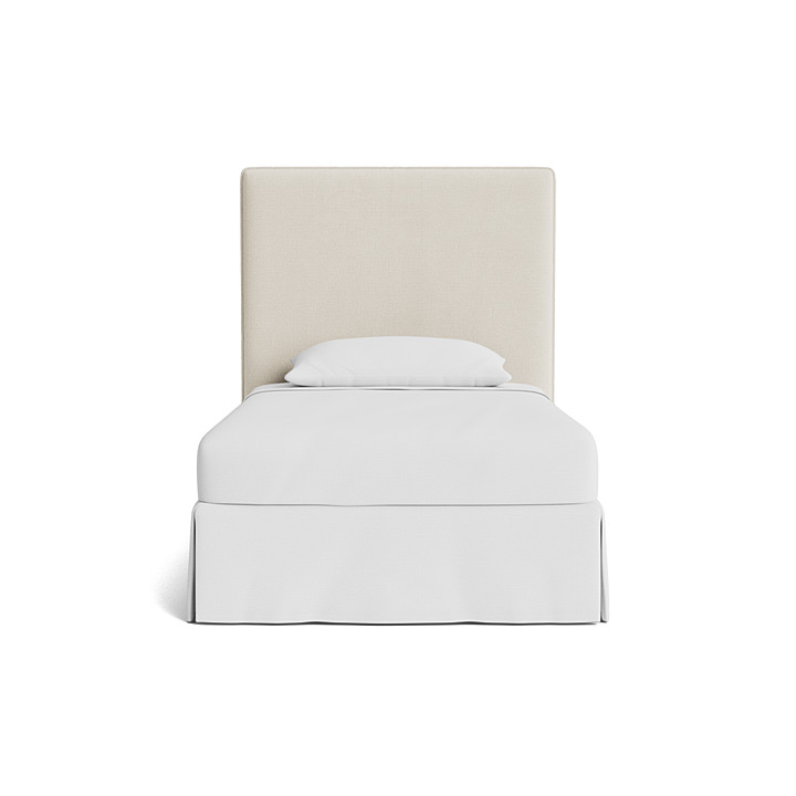 With its intimately scaled design, the Madison upholstered platform bed keeps your bedroom personal, no matter the size of the space. Soft neutral fabric covers the frame, with a flange welt adding dimension to the low profile headboard. Simple 2-inch block legs keep the focus on the clean-lined design and textural fabric. The Madison is available in Twin, Full, Queen, King, and Cal King, and as a headboard only. Visit your local Bassett store for more fabric or leather choices.