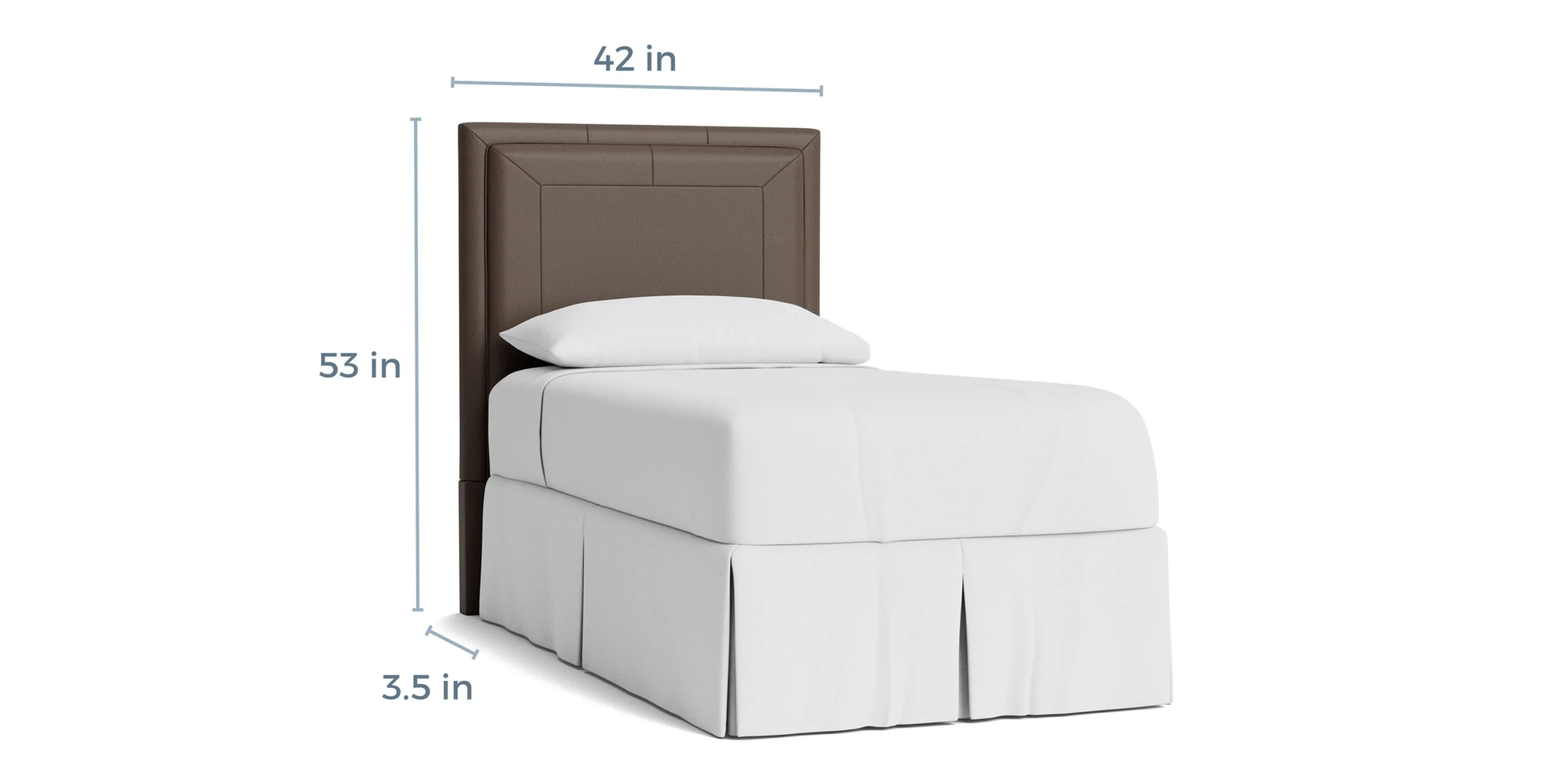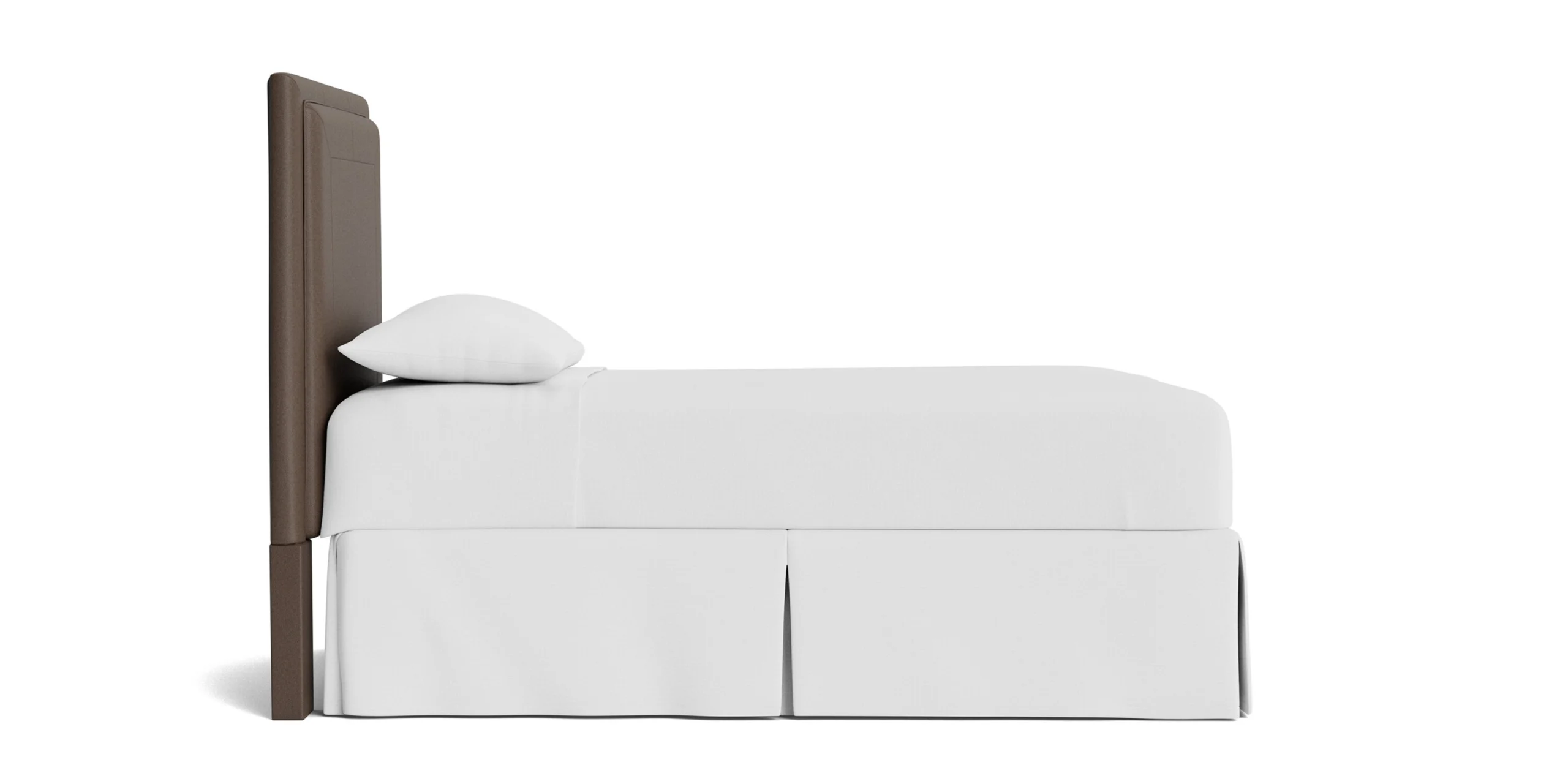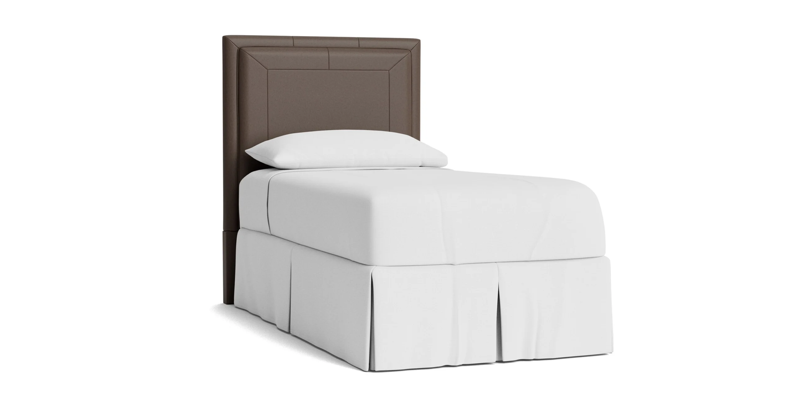 Don’t let its skyline-sleek headboard fool you – the comfort quotient of our Manhattan Upholstered Leather Bed is as sky-high as its style. Wrap the Manhattan’s clean lines in any of Bassett’s luxurious leathers to add classic sophistication to your modern bedroom. Choose a complete bed frame or just the headboard. You can also consider additional options available in-store, including tufting and nailhead trim. Manhattan is available in 5 sizes, from Twin to California King, so any of your bedrooms can be home to a bed promising starry-eyed dreams. Please note: When ordering a complete bed frame, you may need longer rails to accommodate an Adjustable Base. Compare the dimensions of your base to the interior dimensions of the upholstered bed frame or contact our Customer Service if you’d like assistance.