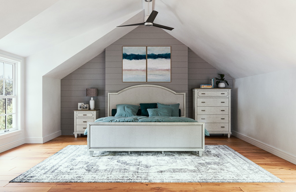 Product Description: Drift away in relaxed elegance with the Newport bed, featuring an exquisitely upholstered headboard and footboard in a graceful, scalloped profile. Available in sizes from full to California King, the bed’s cottage chic styling showcases a distressed, chalk paint-like finish for a vintage heirloom look. The bed is smaller-scaled to perfectly fit in any size bedroom.