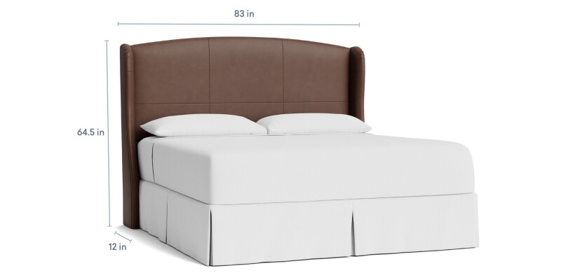Leather upholstered bed with sheltering curves, available as a complete bed or headboard. Customize with tapered or turned wood legs; in-store options include tufting and nailhead trim.