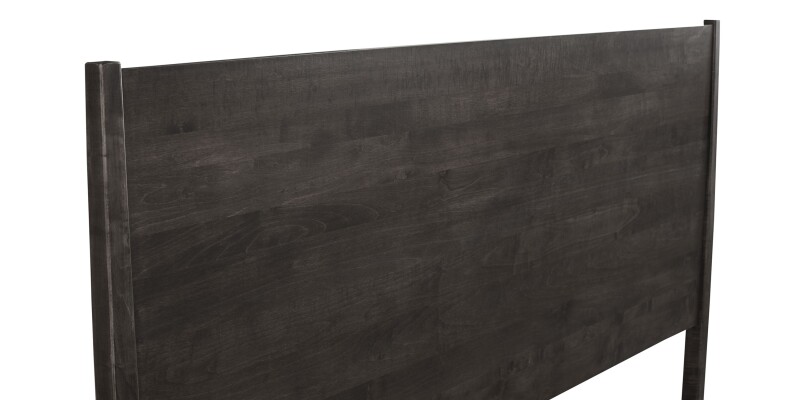 Low, modern panel design in solid silver maple with a dramatic headboard. Artisan made in the USA and available in Lucent or Tobacco finishes.