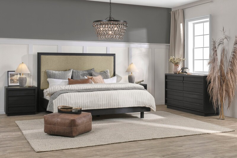The Sedona Bedroom Set, crafted from oak wood, features soft curved edges and a modern design that exudes stealth elegance with an earthy touch. Its clean lines and sophisticated finish bring a sense of refined style, making it a perfect fit for creating a serene and stylish bedroom retreat.