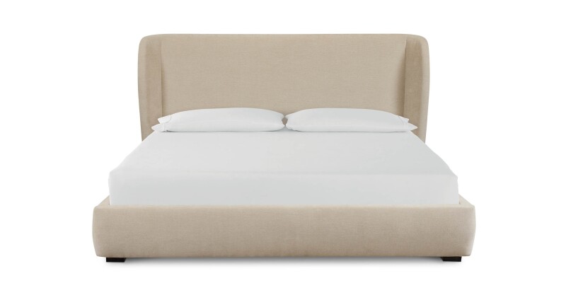 Customizable wing upholstered bed with a floor-length frame and softly curved rails, available in Twin–California King in your choice of fabric or leather.