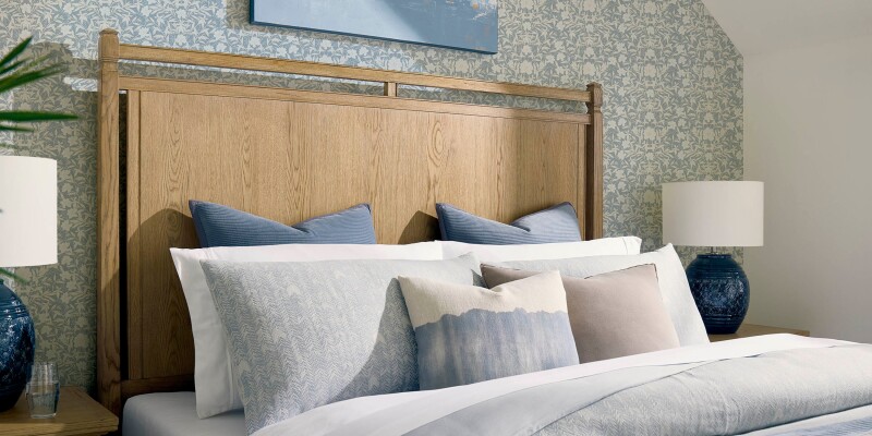 Let your dreams soar as high as the headboard of your Surry Wood Panel Bed. With clean, strong lines and timeless detailing, your bedroom will reflect a fresh design perspective rooted in traditional elegance. Constructed with knotty white oak veneers and solids, Surry is available in either our Flaxen or Truffle finish. Both these finishes highlight the authentic character of its Appalachian hardwood. There’s a headboard only option for this bed, and the Surry collection also includes a dresser, chest, and nightstands to curate your distinctive bedchamber.