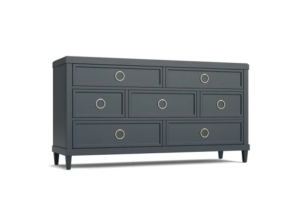 Bassett’s Ventura Colors Panel Bed takes very seriously its starring role in your bedroom. Showing off neo-classic modern lines, its gracefully curved headboard frames an oasis of respite. The knotty elm veneers applied to poplar solids can be finished in your choice of ten different finishes! These semi-opaque finishes imbue the natural markings of the elm with subtle, sophisticated energy. You can purchase the Ventura Colors bed in multiple sizes or as a headboard only. The entire Ventura Collection is a designer’s delight, offering a common thread through a panoply of textures and finishes to create a unique-to-you bedroom.