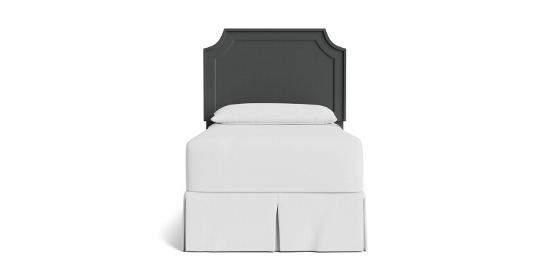 Curved panel headboard featuring knotty elm veneers over poplar solids with neo-classic lines. Compatible with a metal bed frame and offered in multiple finishes.
