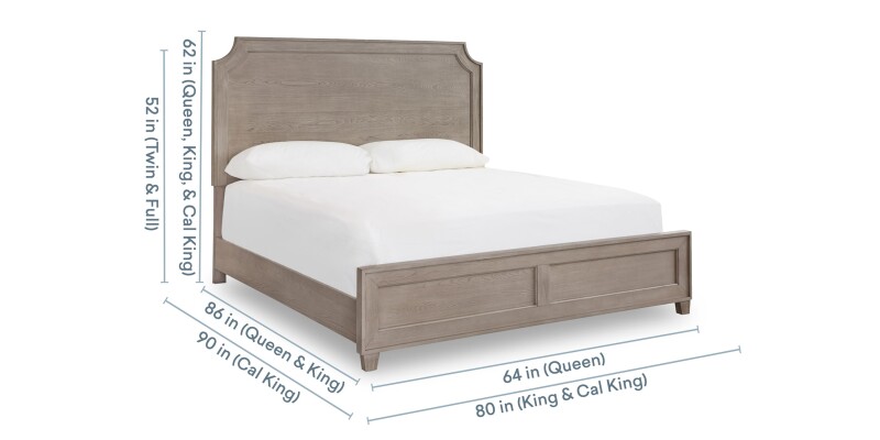 Neo-traditional wood panel bed with clean, modern lines for any bedroom. Offered in Chalk Slate or Shell White; foundation required.