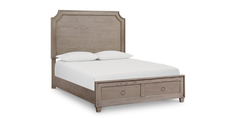 Now our neo-traditional Ventura Panel Bed adds storage to its marriage of impeccable form and comprehensive function. The simplified chic of its modern lines, rendered in your choice of Chalk Slate or Shell White, grace any bedroom with subtle elegance, enhancing your style without stealing your show. Even better, it gives you more space in your bedroom by using the full under-bed area of either a King or Queen bed for storage. Use the Ventura Panel Bed with Storage to help create the spacious, spa-like feeling that promises easy slumber in a restful oasis.