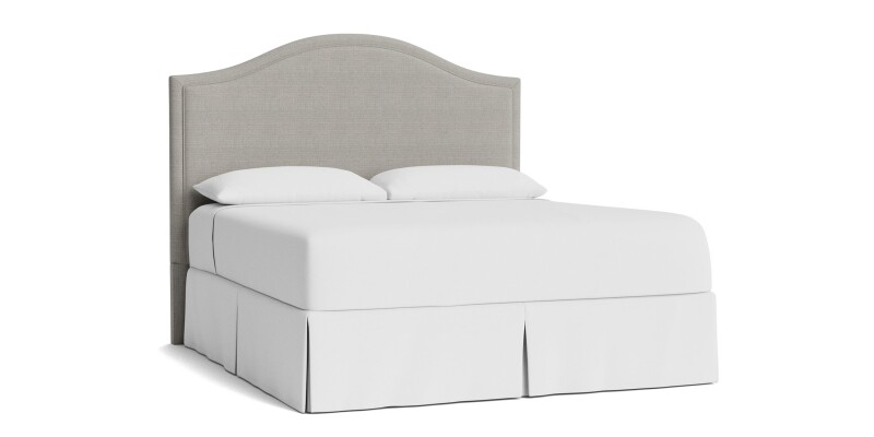 Custom upholstered bed or headboard with a classically curved camelback silhouette, tailored in your choice of fabric and offered in sizes from Twin to California King.