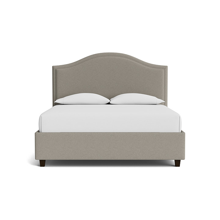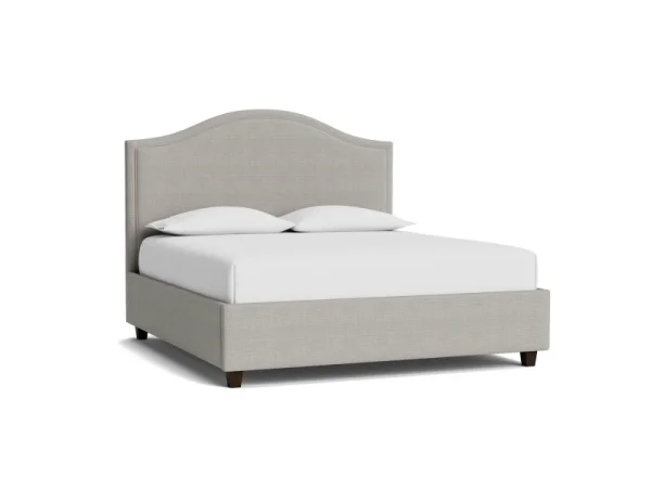 Camelback-style upholstered bed available as a complete frame or headboard, customizable in designer fabrics with options like tufting or nailhead trim. Available in Twin–California King.