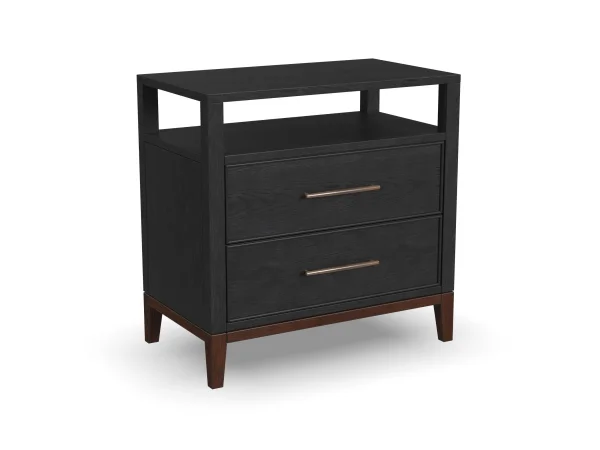 Add effortless style and architectural appeal to your bedroom with the Waterfall Queen panel bed. This platform-style bed features a timeless silhouette defined by clean lines and simple geometric shapes. Dark brown-finished base accents add a striking contrast to the deep ebony finish, while the clean, rich headboard brings an element of softness to the aesthetic. Expertly crafted from solid rubberwood and oak veneers, the Waterfall Queen bed offers lasting beauty you can feel good about.