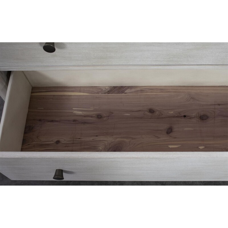 Top drawer has a felt-lined bottom, bottom drawer has a cedar veneer bottom, all others are veneer drawer bottoms | Yes |