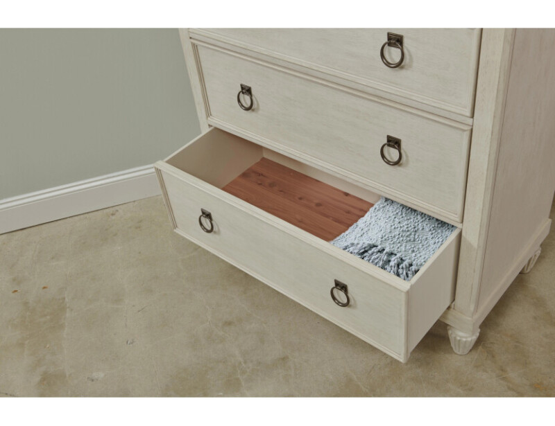 The Tybee Drawer Chest offers a terrific storage option for the bedroom. With large, full depth drawers it is an excellent solution for bedrooms with smaller wall spaces due to entry/closet doors or windows which can limit the spaces available for longer dressers. A few features that stand out on the Tybee Drawer Chest are found inside the drawers. The second and third drawer from the top include removable dividers to keep contents organized while the bottom drawer features a cedar lined bottom.