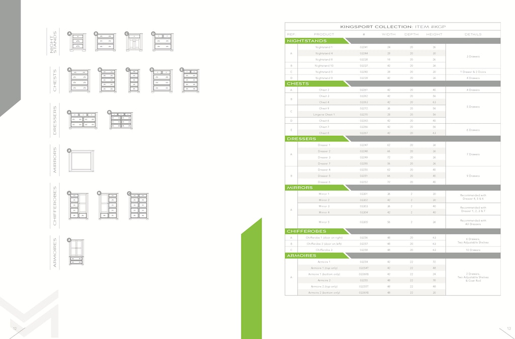 The Kingsport collection offers refined lines and curve appeal for your style conscious and creative tastes. This bedroom furniture collection radiates strength and elegance in any choice of stain. Width: 42″ (106.7 cm) Depth: 22″ (55.9 cm) Height: 72″ (182.9 cm)