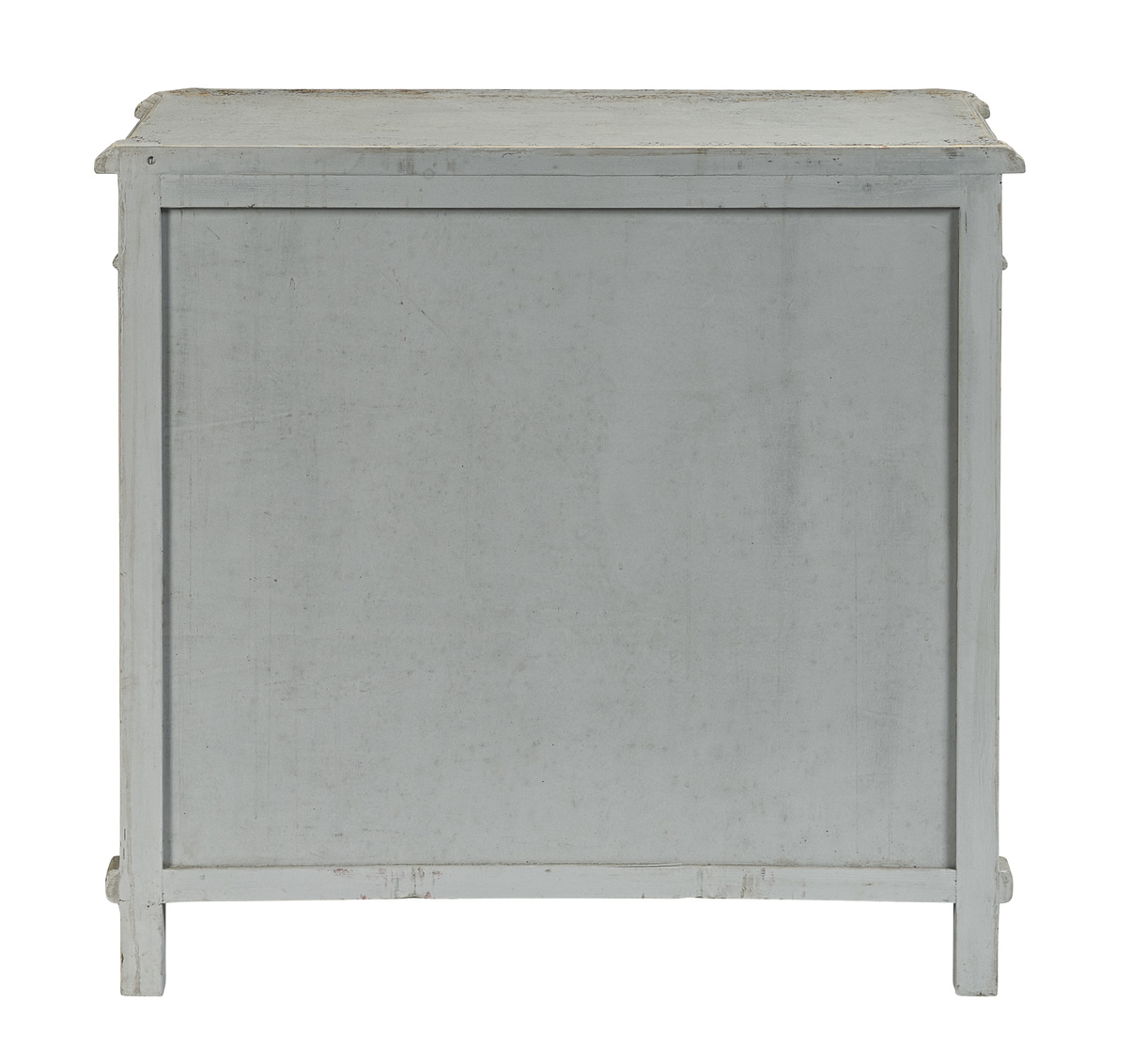 Generously scaled to hold linens, games or beach towels, this handsome chest is crafted from reclaimed pine with an authentically distressed soft gray blue paint. Angled corners lighten the profile, and diamond shaped moldings add a touch of visual interest.