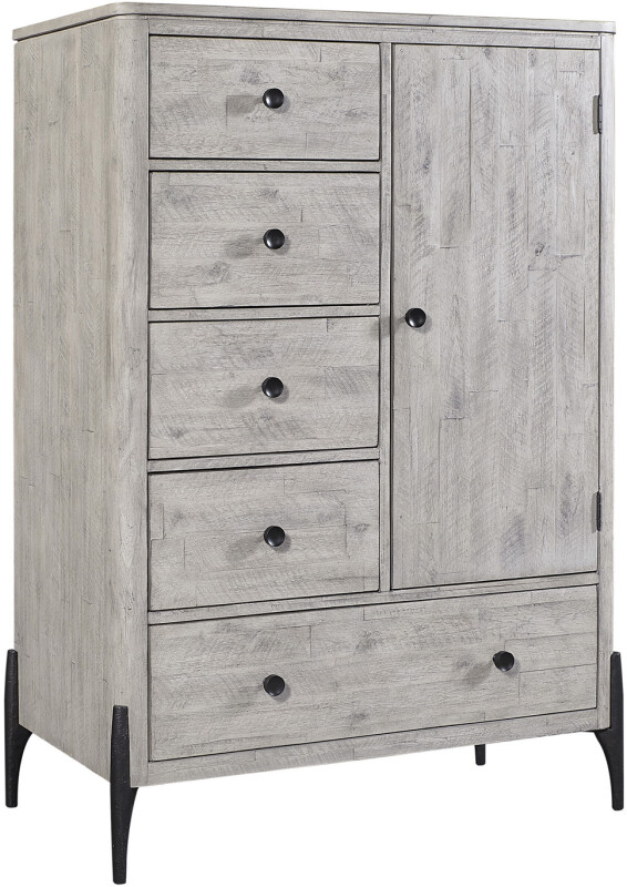 The contrast between the lightly textured parchment finish and matte black metal hardware provides a clean, contemporary look and timeless style.