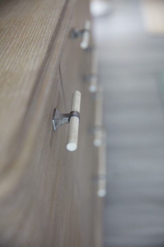 Serene and stylish with simple, clean lines, the Affinity Dresser combines a soft rounded silhouette with a wire-brushed greige and antique white finish to create an inviting transitional look. Pewter and antique white bar pulls add intrigue. Offering 8 drawers, the top drawers have a drop-in felt liner and the right top drawer has a drop-in jewelry tray that sits on a wooden support at the top of the drawer to allow from extra storage underneath. The top drawers have a drop-in felt liner.