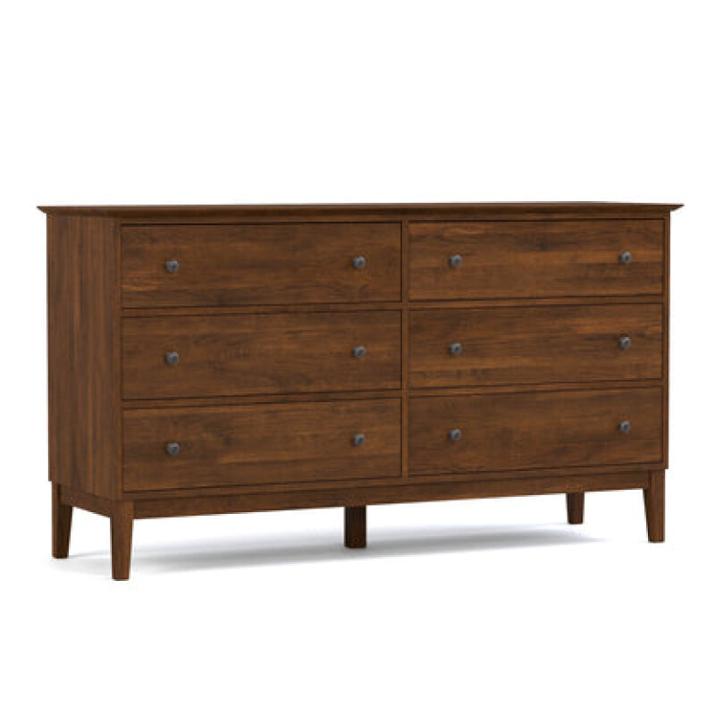 Six drawers with your choice of curated hardware create an accent piece that offers function and style. The dresser features undermount drawer slides, a beveled top, a bottom dust panel, and a tapered post base. Available with Express Ship in your choice of Origins by Stickley finish and hardware.