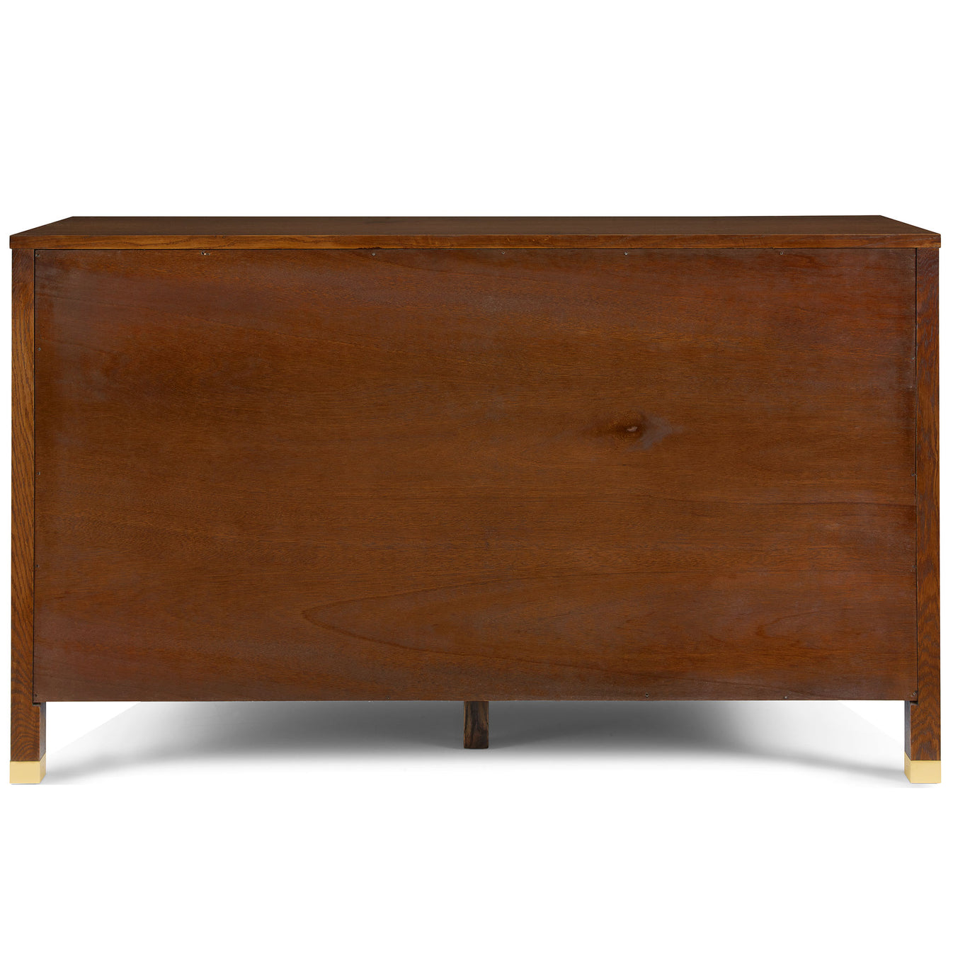 Our dressers and chests are beautiful examples of Surrey Hills’ artisan qualities. For the Six-Drawer Dresser, a case of quartersawn white oak holds six side-hung, center-guided drawers with tapered satin brass knobs in two sizes. The top drawers feature our fretwork motif with a back panel and a continuous vine pattern cut from frame to frame. Stepped stiles around each square and drawer face add definition and depth, and the legs end in low satin brass ferrules.