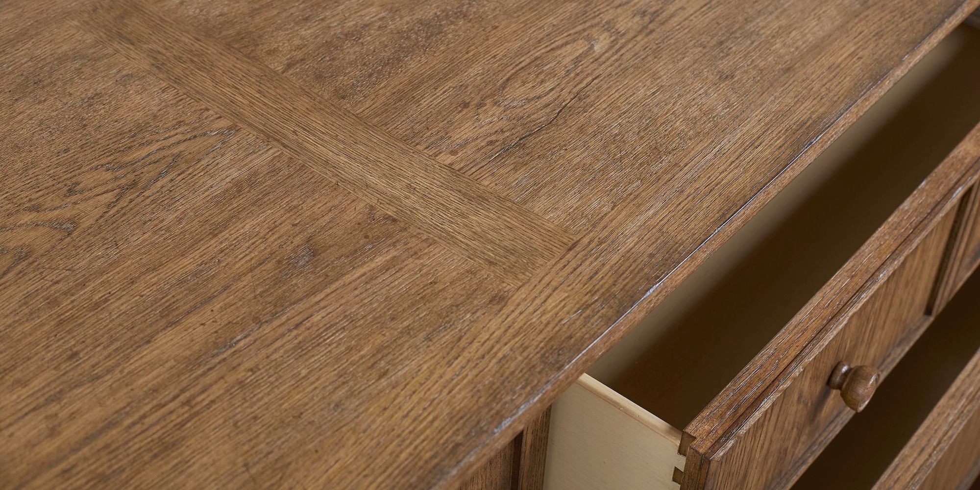 The Surry 6 Drawer Dresser can hold its own in any well-designed bedroom, not only storing clothes but also giving you a style focal point to create a balanced and engaging aesthetic. The Surry’s clean lines and updated traditional elements provide a perfect surface for boudoir tablescaping, supporting lamps, vases, and other treasures. Constructed with knotty white oak veneers and solids, Surry is available in either our Flaxen or Truffle finish.