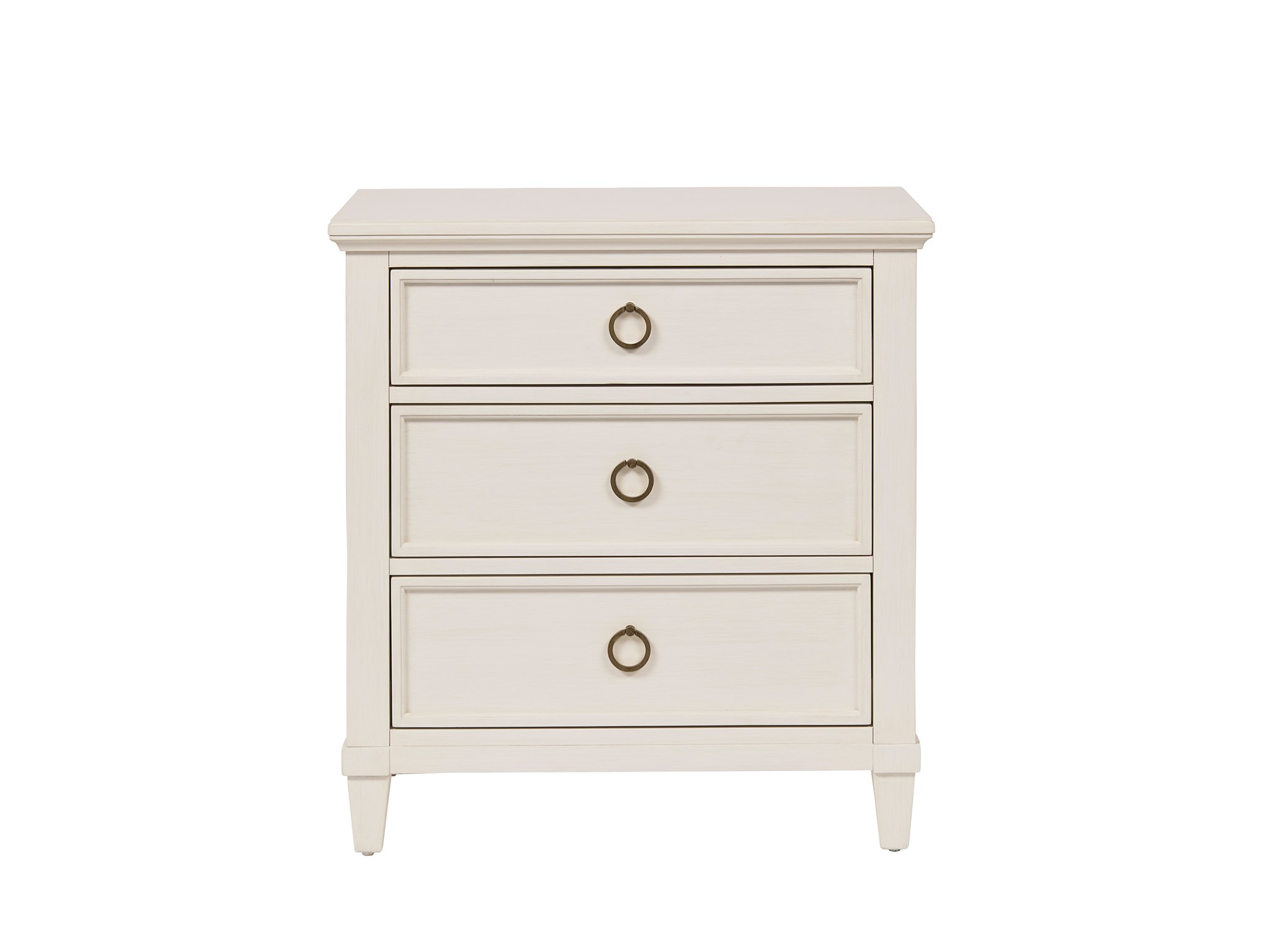 Bring classic appeal to bedsides with the Antibes Nightstand, featuring 3 drawers with bronze ring pulls, and a white finish.