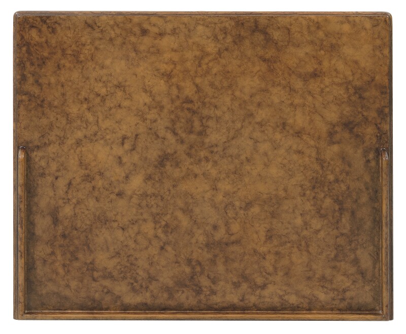 The Archives Two-Door Nightstand is a unique addition to any bedroom. Featuring a Mottled Amber faux-tortoise shell finish and woven cane door fronts, this nightstand combines texture and style. Inside, an adjustable shelf provides versatile storage, while a pull-out tray and gallery rail on top add functionality to this chic, medium wood piece.