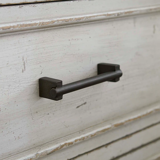 Bassett Furniture Furniture’s extensive Bella collection faithfully recreates the look of prized antiques for the romantic upholstered panel bed, wood panel bed, dressers, chest, nightstand, bedside table, and mirror. Eclectic Aged Whitestone chip-away finish, worn pewter-finished bar pulls, and all over wire-brushed warm gray finish tell the whole bedtime story. Textured stone top option is available on dressers and nightstands. Case pieces feature self-closing drawer guides.