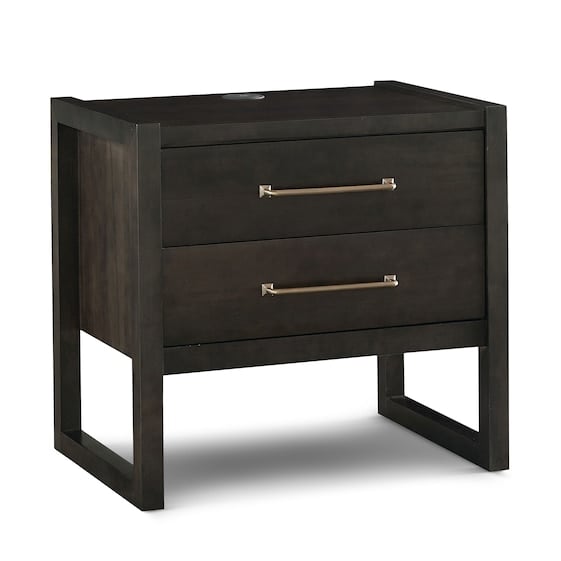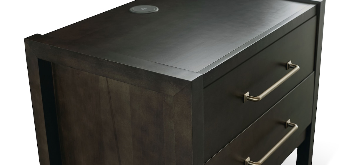 Rest your eyes on the BenchMade Braddock Maple Nightstand, a modern classic in the making. Each piece is carefully handcrafted to bring out the character of the Appalachian red leaf maple, with modern angles enhanced by an open and airy base. What sets this nightstand apart is its quality construction, with details like dovetail joinery and soft close drawer guides on the solid maple drawers. Generously sized metal bar pulls enhance the style, in your choice of antique pewter or brass finish. to any bedroom.