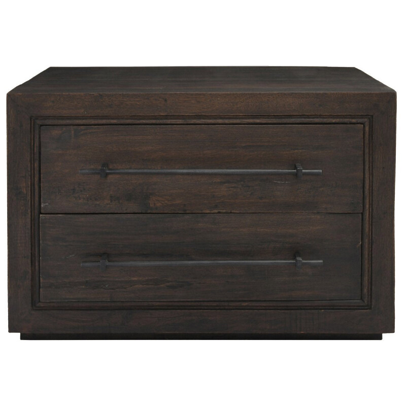 The Magdalena Nightstand features a rich distressed finish that adds character and warmth. With sleek metal hardware for a modern touch, this nightstand offers both style and practicality. The Magdalena Nightstand blends rustic charm with contemporary design, creating a functional and stylish piece for any space.