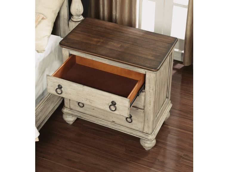 The Plymouth nightstand boasts a shabby chic design with contrasting wood finishes and paneled construction. With an overall graywash finish accented by a dark tabletop, Plymouth is ideal for those who like a bit of vintage design in their modern lives. With its convenient charging station hidden in the back, the Plymouth nightstand is a practical piece for any modern-day bedroom.