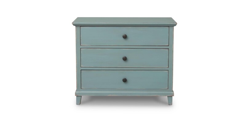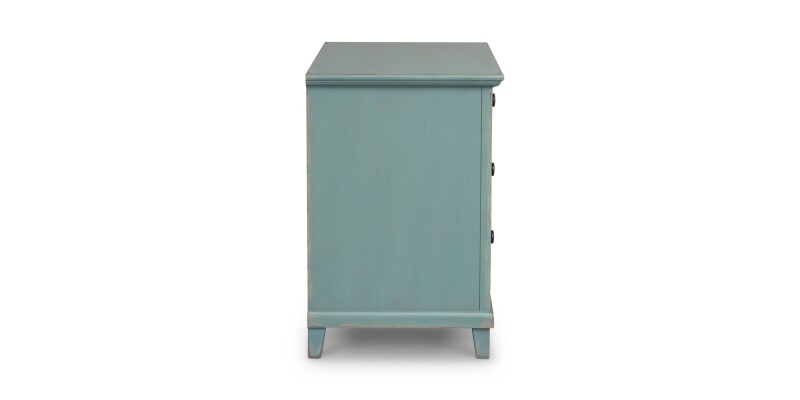 The generously sized Williams Nightstand keeps all your nighttime necessities close at hand. Details like the antiqued pewter knob on each soft-close drawer give a nod to classic styling, while a hidden power strip in back with AC and USB outlets brings modern function to this bedroom mainstay. A broad top surface gives you plenty of space for a lamp and accessories. Choose the finish color that best fits your personal vision – cool, gently distressed Lagoon or Adriatic Blue, or solid Porcelain white.
