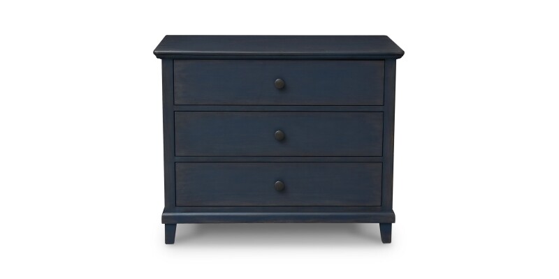 The generously sized Williams Nightstand keeps all your nighttime necessities close at hand. Details like the antiqued pewter knob on each soft-close drawer give a nod to classic styling, while a hidden power strip in back with AC and USB outlets brings modern function to this bedroom mainstay. A broad top surface gives you plenty of space for a lamp and accessories. Choose the finish color that best fits your personal vision – cool, gently distressed Lagoon or Adriatic Blue, or solid Porcelain white.