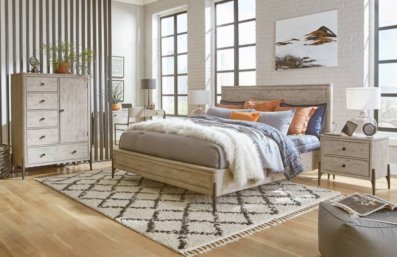 The contrast between the lightly textured parchment finish and matte black metal hardware provides a clean, contemporary look and timeless style.