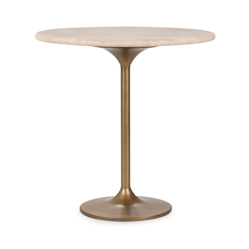 The Malani Table effortlessly merges the elegance of travertine with the sculptural beauty of its iron tulip base. With its timeless design, this piece evokes a sense of refined luxury, becoming the heart of any dining room. The natural stone and bold metal base create a harmonious balance, inviting shared moments of beauty and grace at the table.