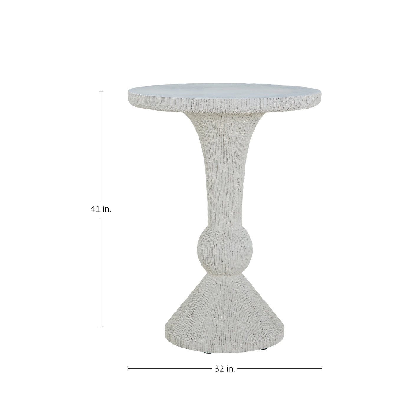 The Monticello Bar Table makes a bold architectural statement with its dramatic silhouette and artisan-crafted texture. Formed from our proprietary Cast Stone—a blend of natural crushed stone and a durable binder—this bar-height table is designed to perform beautifully in both indoor and outdoor settings. Its sculpted pedestal features a rounded center and a flared conical base, accented with a roughly ribbed surface that adds tactile depth and visual interest. Combining timeless form with all-weather resilience, the Monticello Bar Table is an ideal centerpiece for elevated outdoor entertaining.