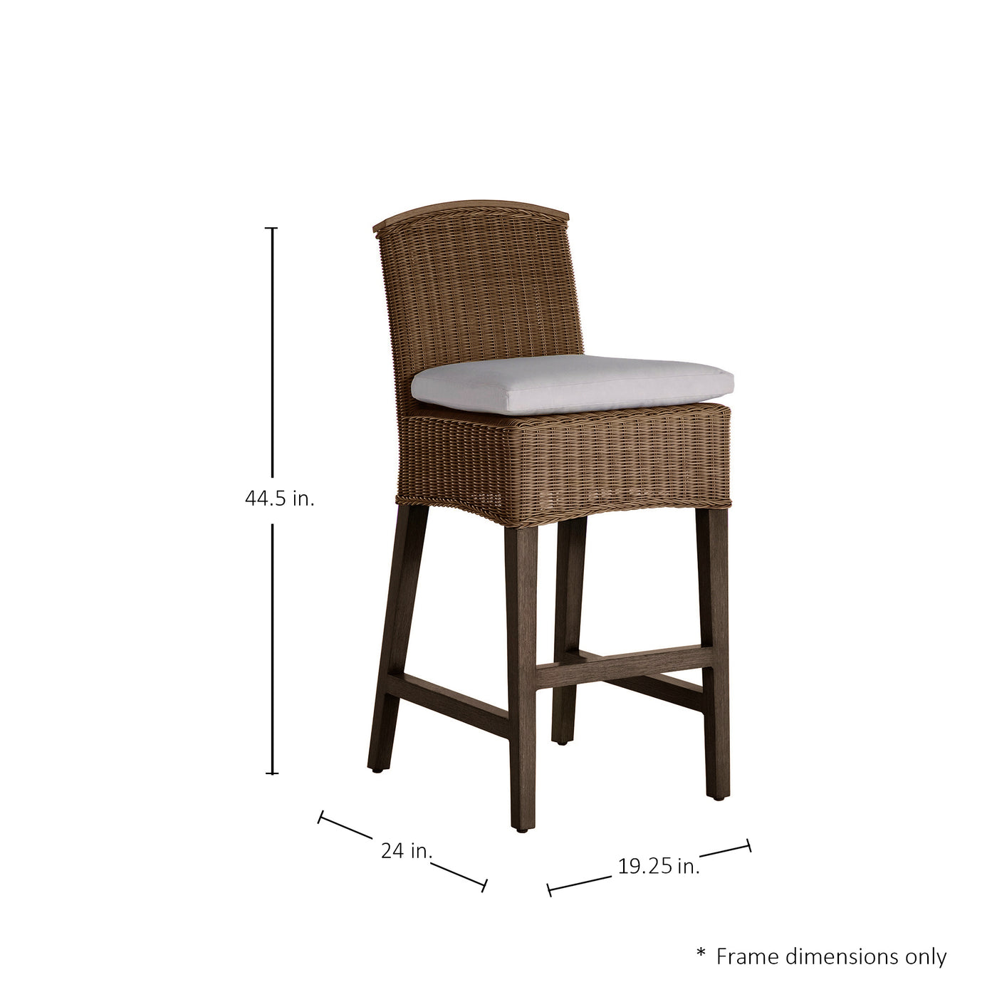 The Astoria Bar Stool beautifully marries elegance and resilience, blending our exclusive N-Dura™ resin wicker with a robust wrought aluminum frame. This stool’s timeless design and durable materials offer a chic yet practical addition to any outdoor counter space, providing a comfortable perch for leisurely alfresco meals or casual gatherings. This item is designed to be enjoyed either with or without a cushion. Please designate your choice in the below “Select a Cushion” dropdown.