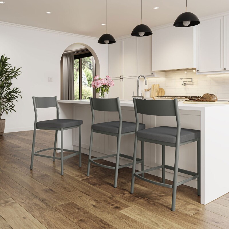 The Madeira stool boasts clean lines that define its minimalist silhouette. The round tube base draws inspiration from Scandinavian aesthetics, while the metal backrest adds a subtle industrial edge, creating a perfectly balanced look. It also features a wide seat and backrest, providing exceptional comfort. Whether in a sleek contemporary kitchen or an industrial-inspired bar area, The Madeira barstool will elevate your space with style.