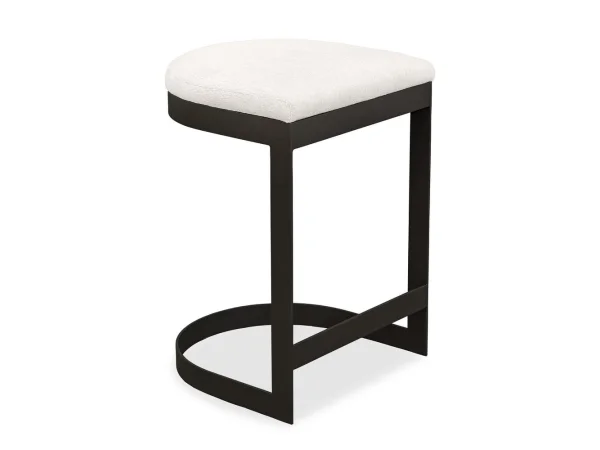 The Maude outdoor counter stool blends industrial style with cozy comfort, featuring a durable, powder coated steel frame in java black paired with a plush cushion in heavily textured taupe gray solution dyed acrylic fabric.